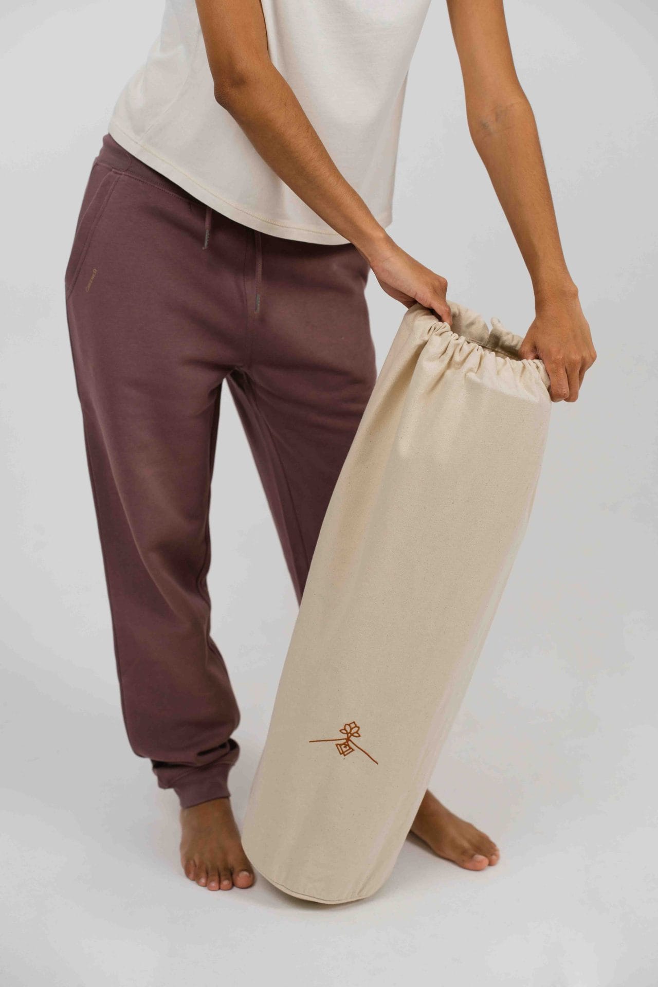 Bolsa para esterilla de yoga confeccionada en algodón 100% orgánico, con cierre de cuerda corredera y tirante de hombro ancho y ajustable para mayor comodidad. Su tejido es resistente y pensado para acompañarte allá donde practiques.