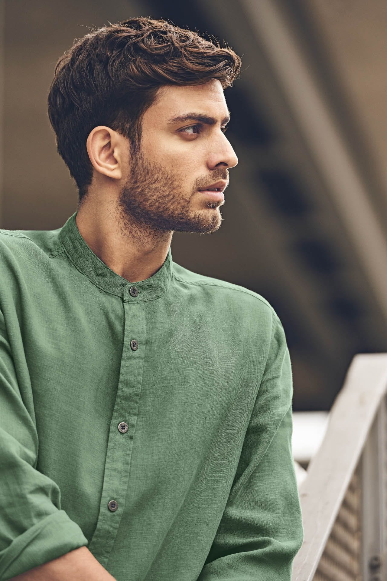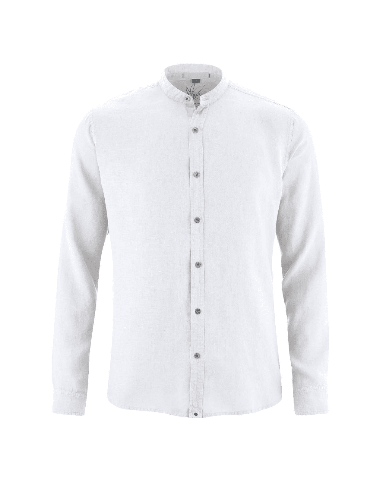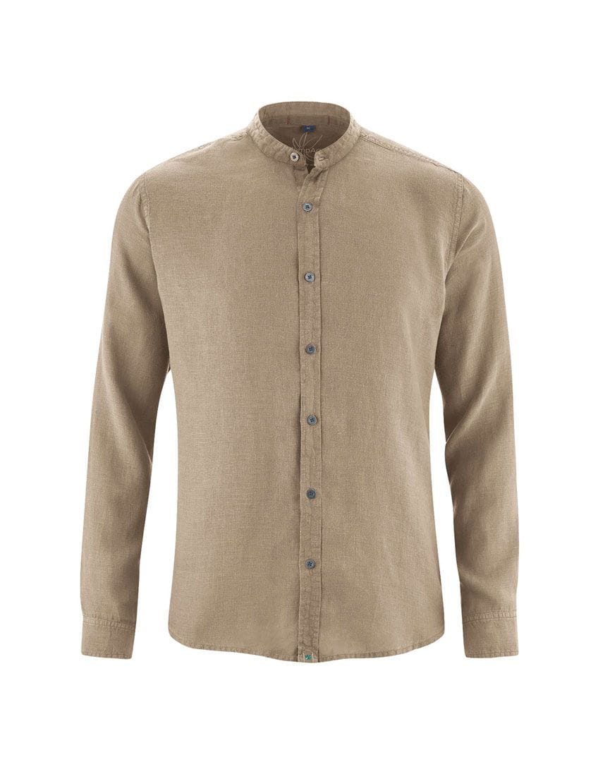 Camisa de cáñamo con cuello mao para hombre.