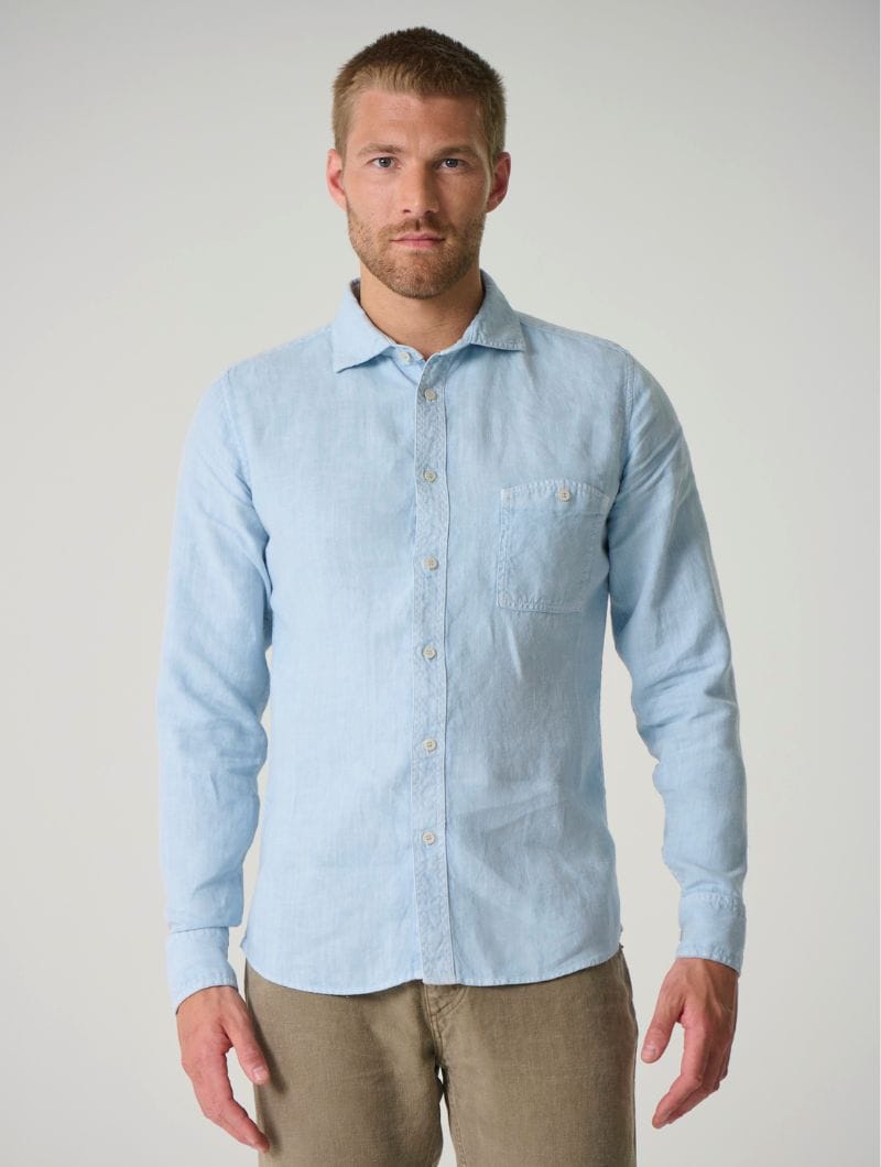 Camisa de corte ajustado, confeccionada completamente en 100% cáñamo.