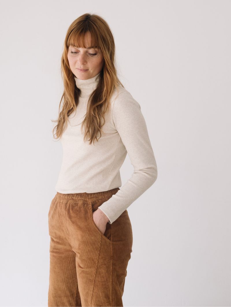 Confeccionada con algodón orgánico certificado GOTS (95%) y un pequeño porcentaje de elastano (5%), es cálida, flexible y agradable de llevar en los meses fríos.