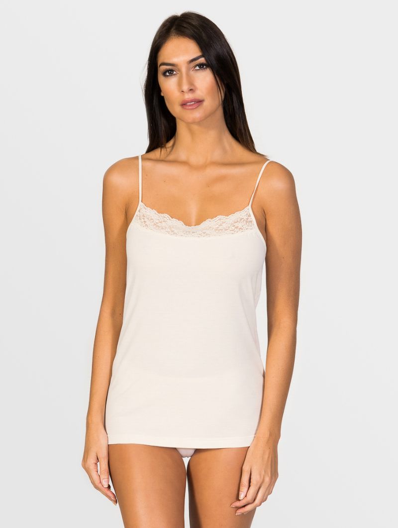 Camiseta interior de tirantes confeccionada en España con hilo de soja y algodón orgánico. Un tejido de tacto sedoso y ligero que se adapta a tu cuerpo como una segunda piel.