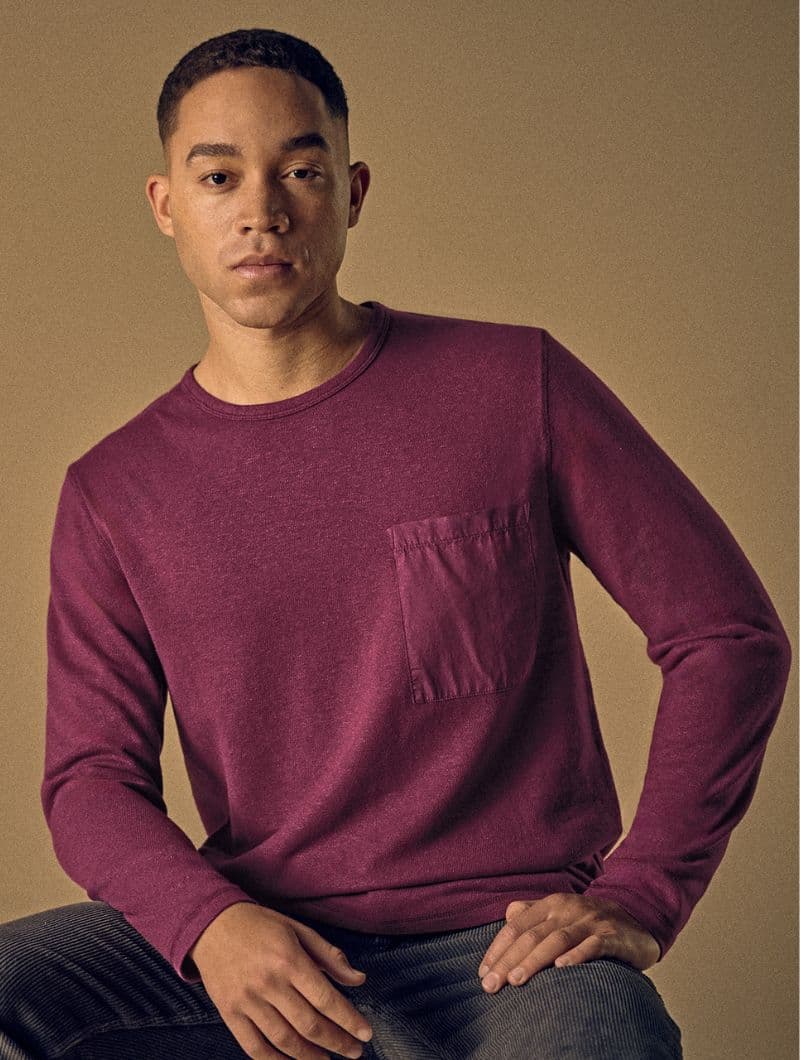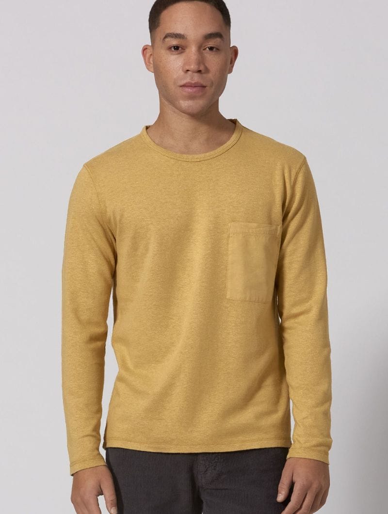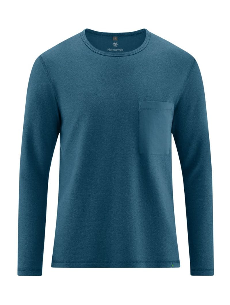 Suave y agradable camiseta de manga larga, confeccionada en un fino tejido de punto jaspeado a partir de la mejor mezcla de cáñamo y algodón orgánico.