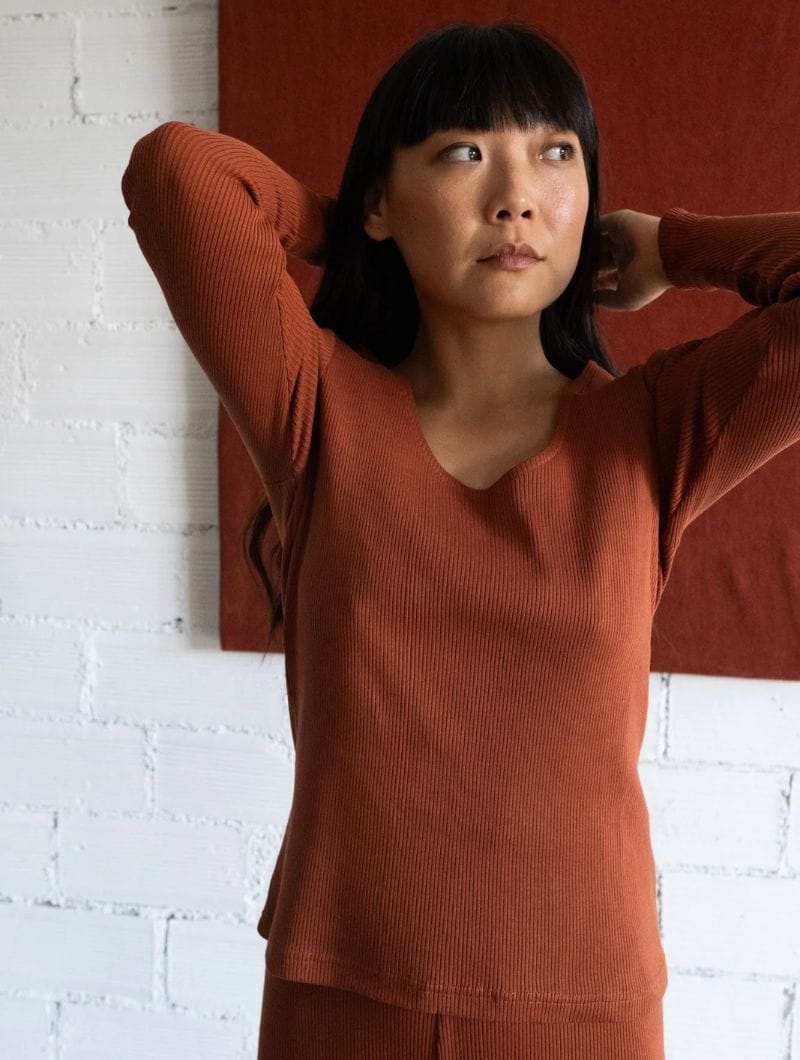 La camiseta manga larga de canalé es una prenda de Comercio Justo diseñada en España y confeccionada en India de forma ética.