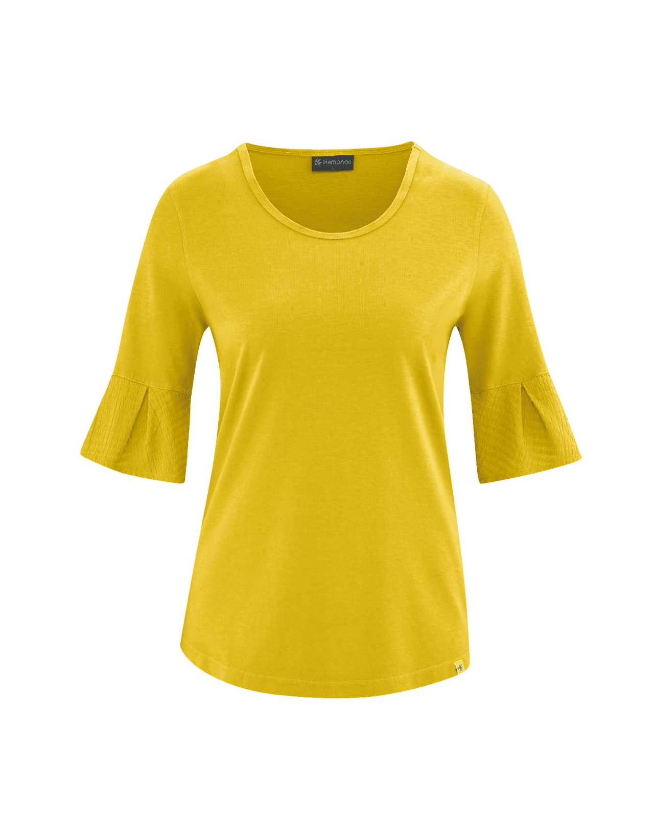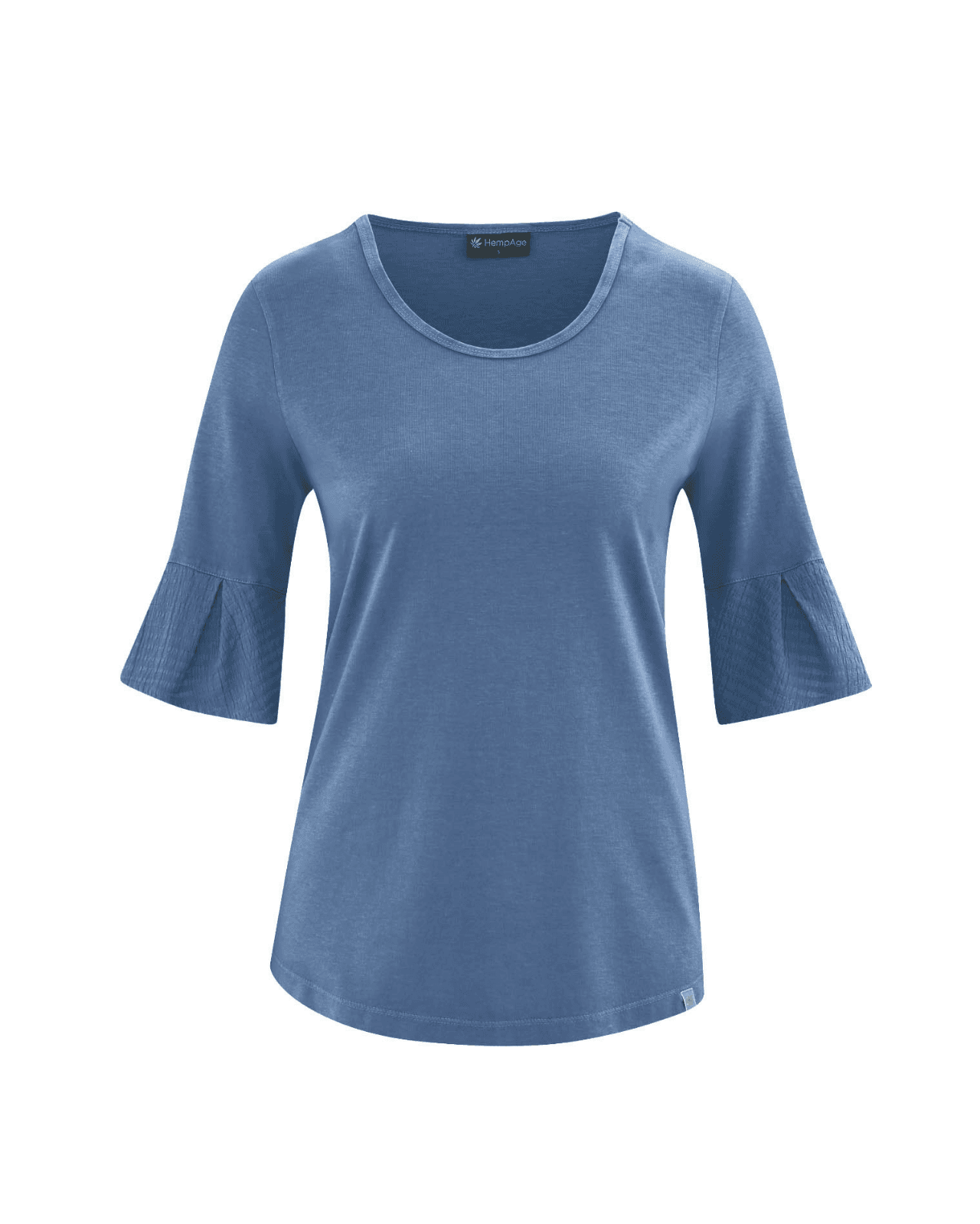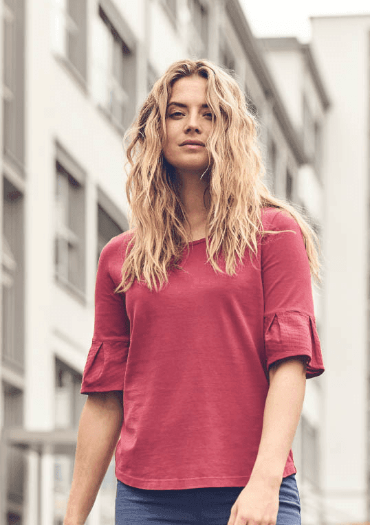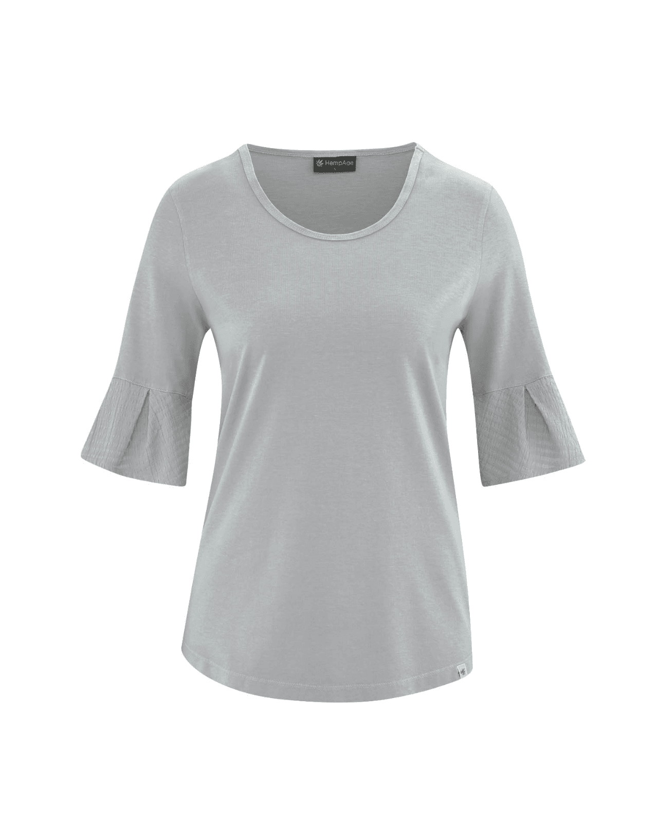 Original camiseta para mujer de manga campana con texturas y bajo redondeado.