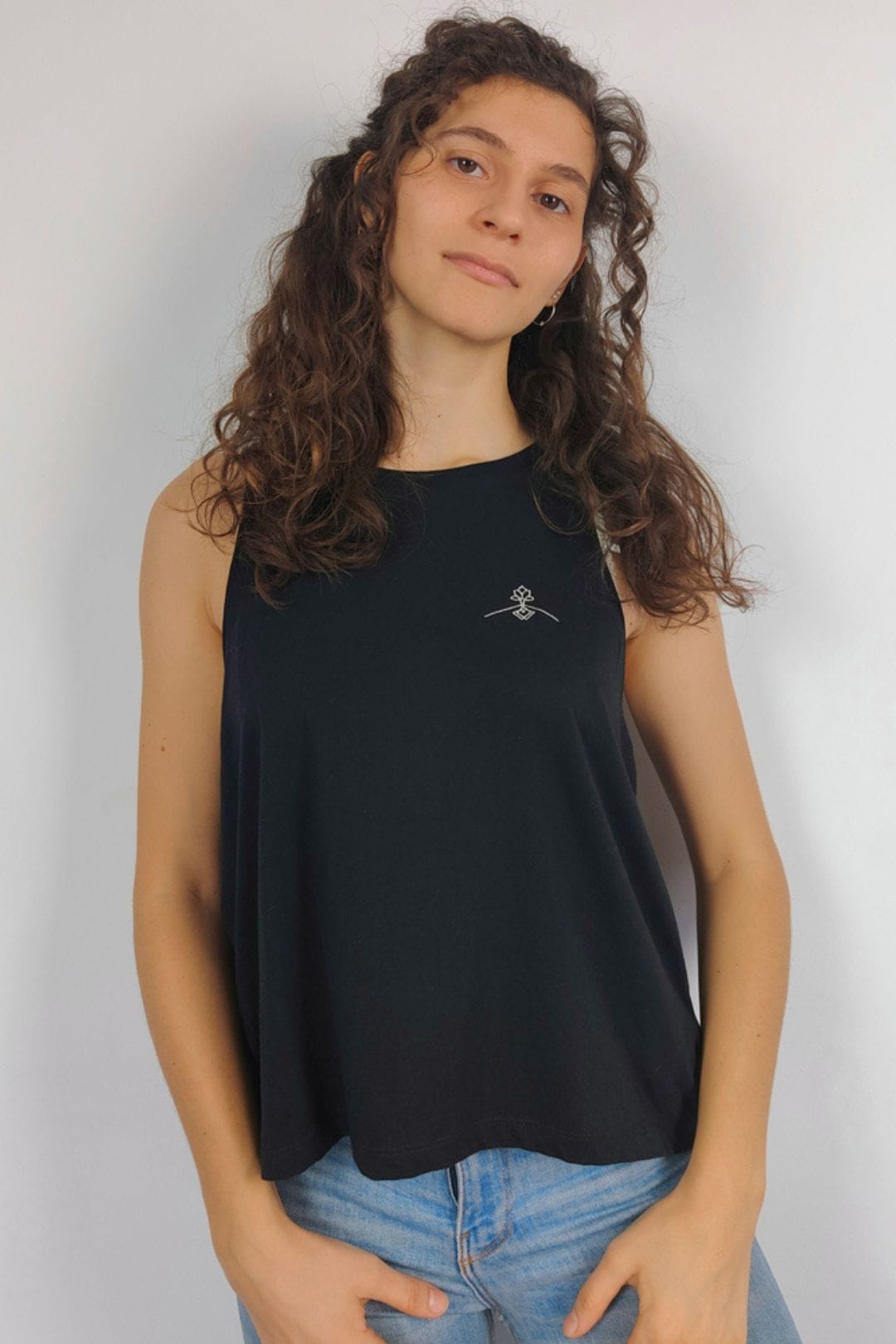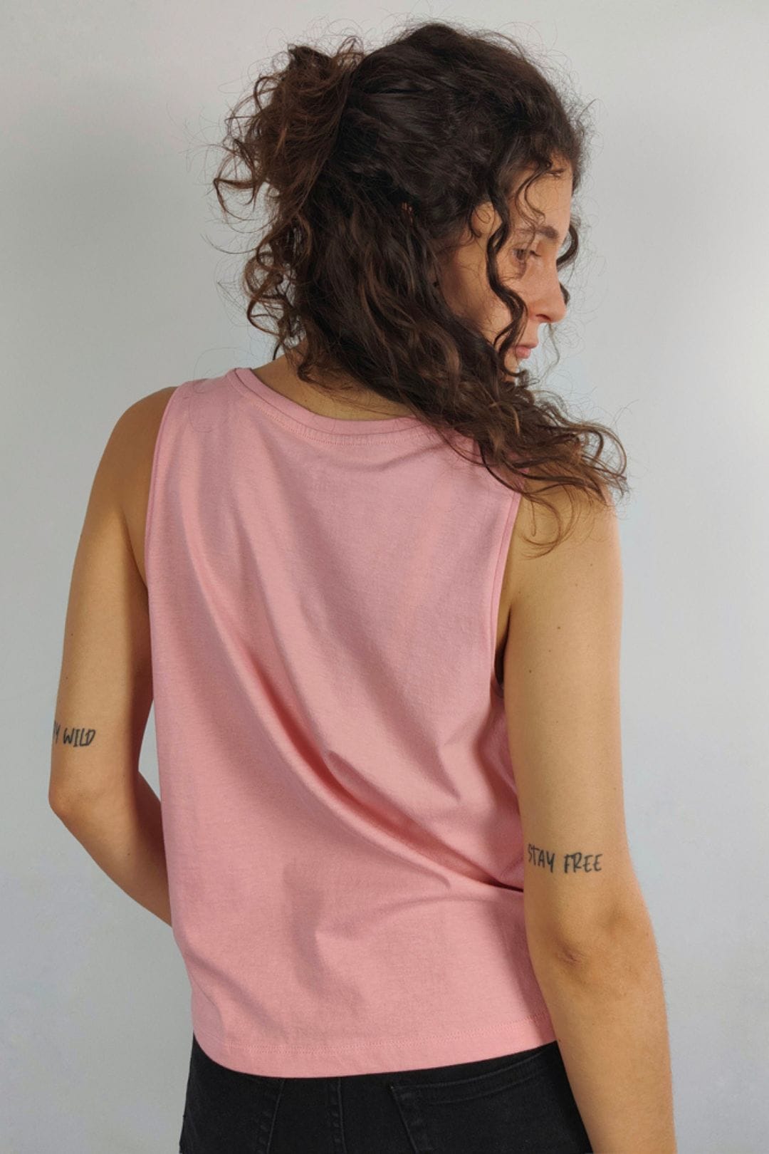 Esta camiseta de tirantes, con corte holgado y cuello redondo, está pensada para que te muevas con libertad. Confeccionada con algodón 100% orgánico certificado, es suave, ligera y fácil de combinar gracias a sus colores neutros.