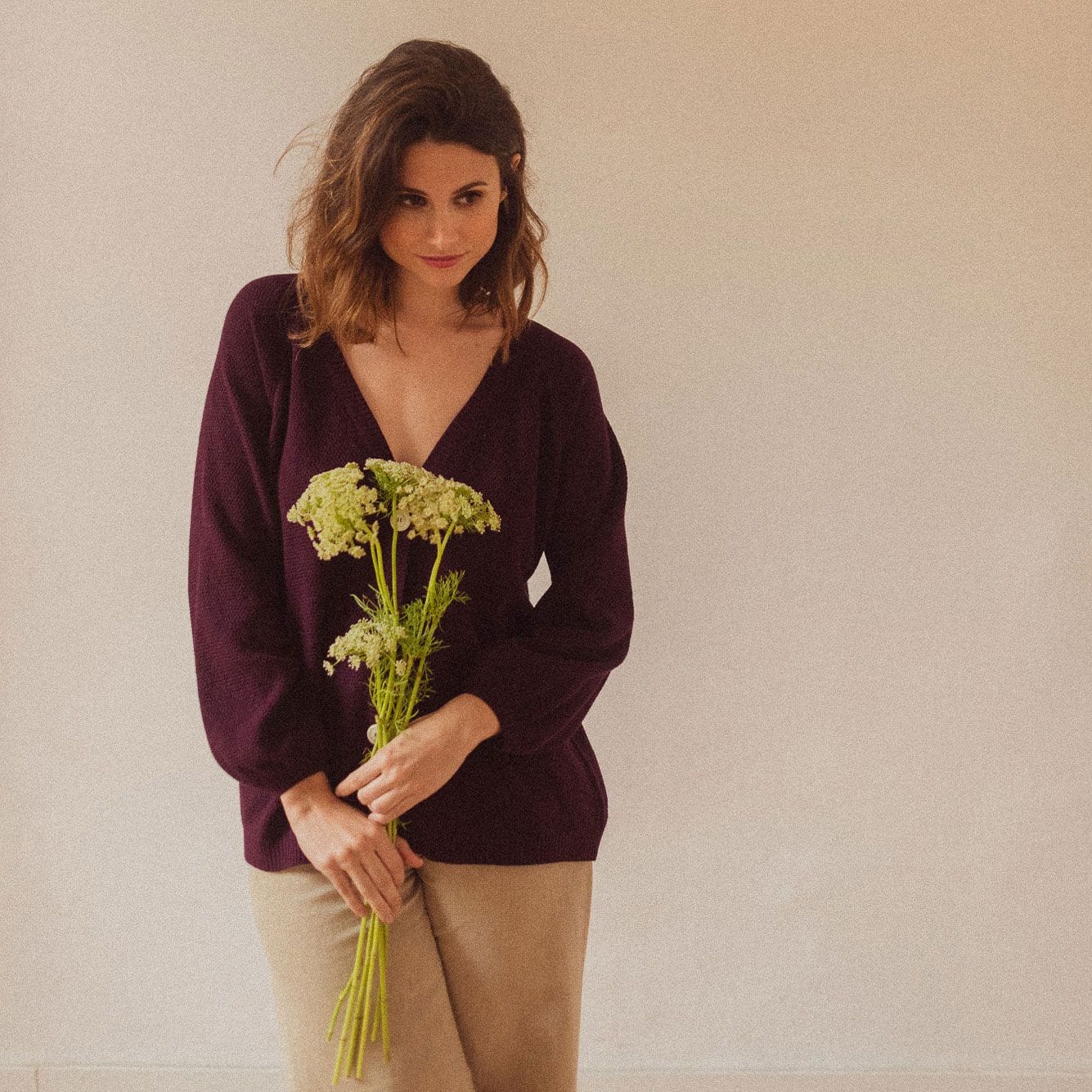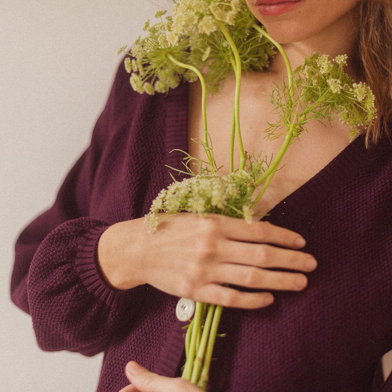 El cardigan de punto mujer es una prenda de calidad tejida de forma ética en un pequeño taller de Madrid.