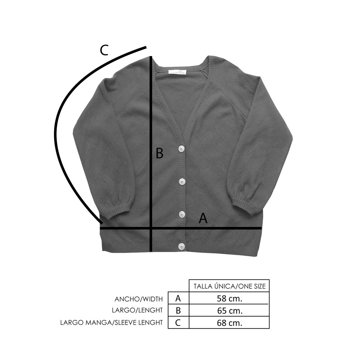 Cuenta con un original tejido texturizado y mangas ligeramente abullonadas, detalles que hacen especial a esta prenda. Los delicados botones están hechos con corozo natural, un material 100% vegetal y eco-friendly.