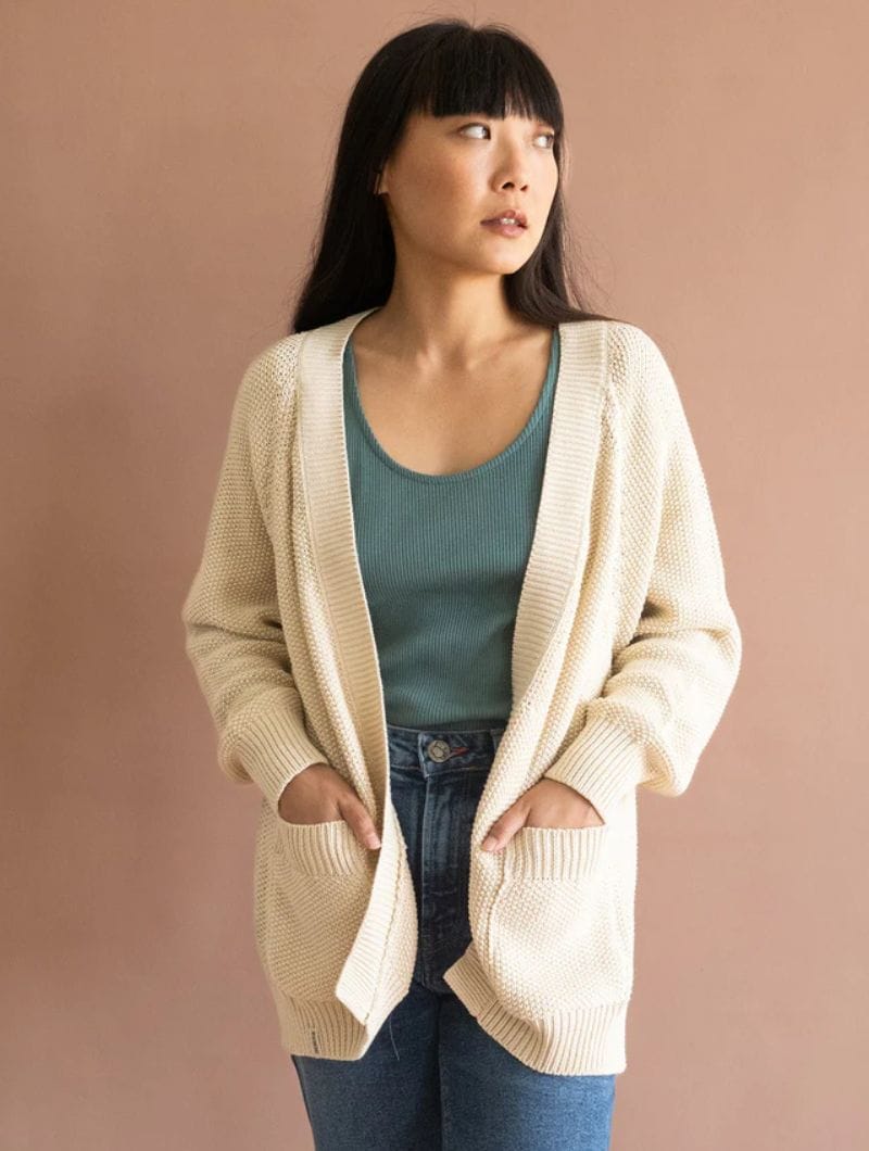 El tejido de algodón orgánico certificado GOTS brinda una textura suave que respeta la piel, mientras que su color crudo añade un toque de serenidad y elegancia natural a tu vestuario. Confeccionada siguiendo prácticas sostenibles y éticas, cada chaqueta refleja un compromiso con la calidad y el respeto al medio ambiente.