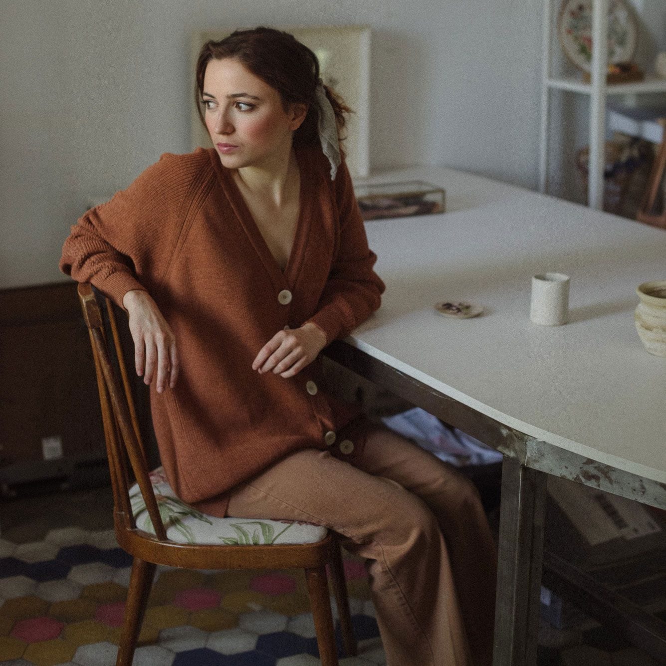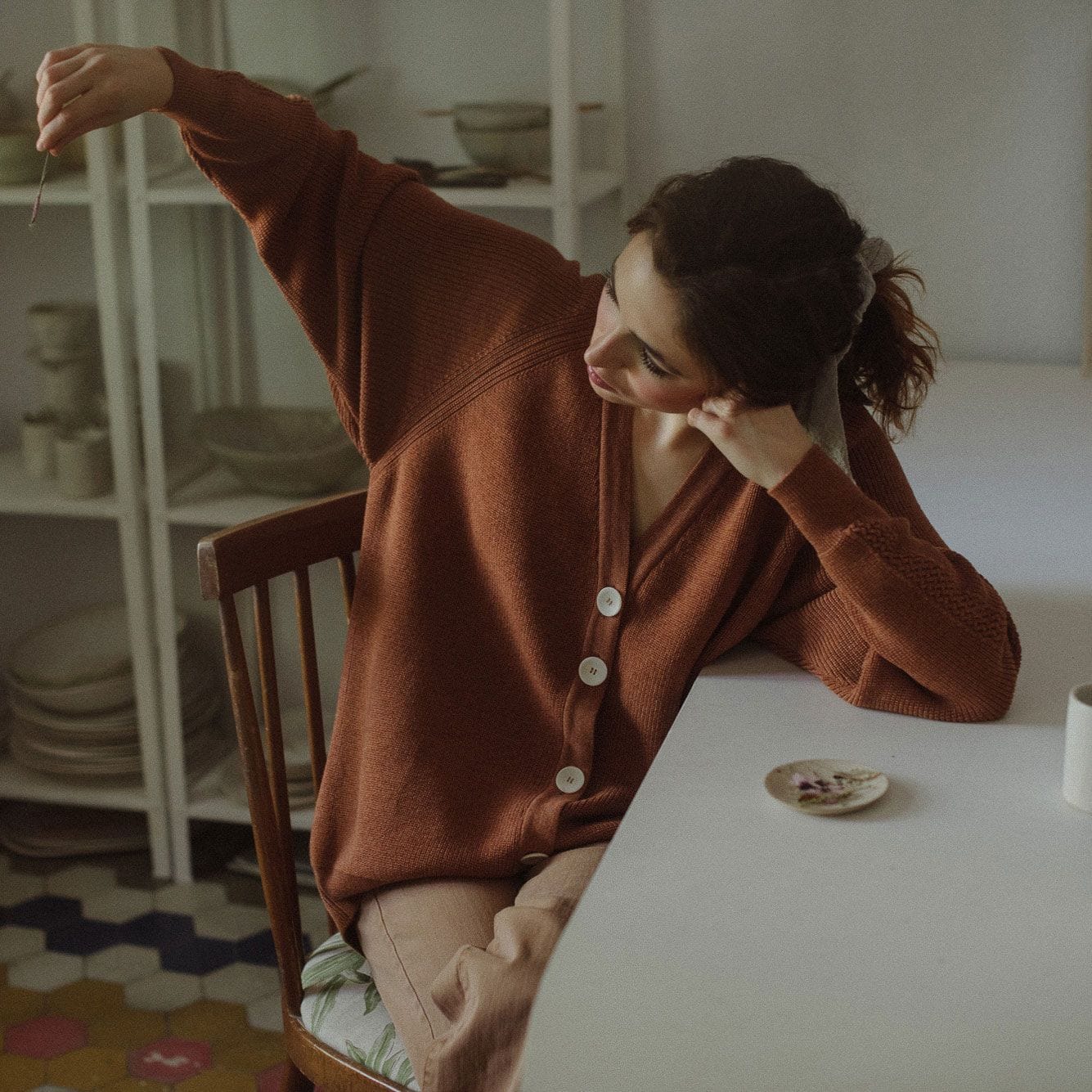 Está fabricada en lana de oveja merina extrafina 100% natural con certificado STANDARD 100 by OEKO-TEX®, teñida con tintes de bajo impacto ambiental y tejida en un pequeño taller de Madrid.