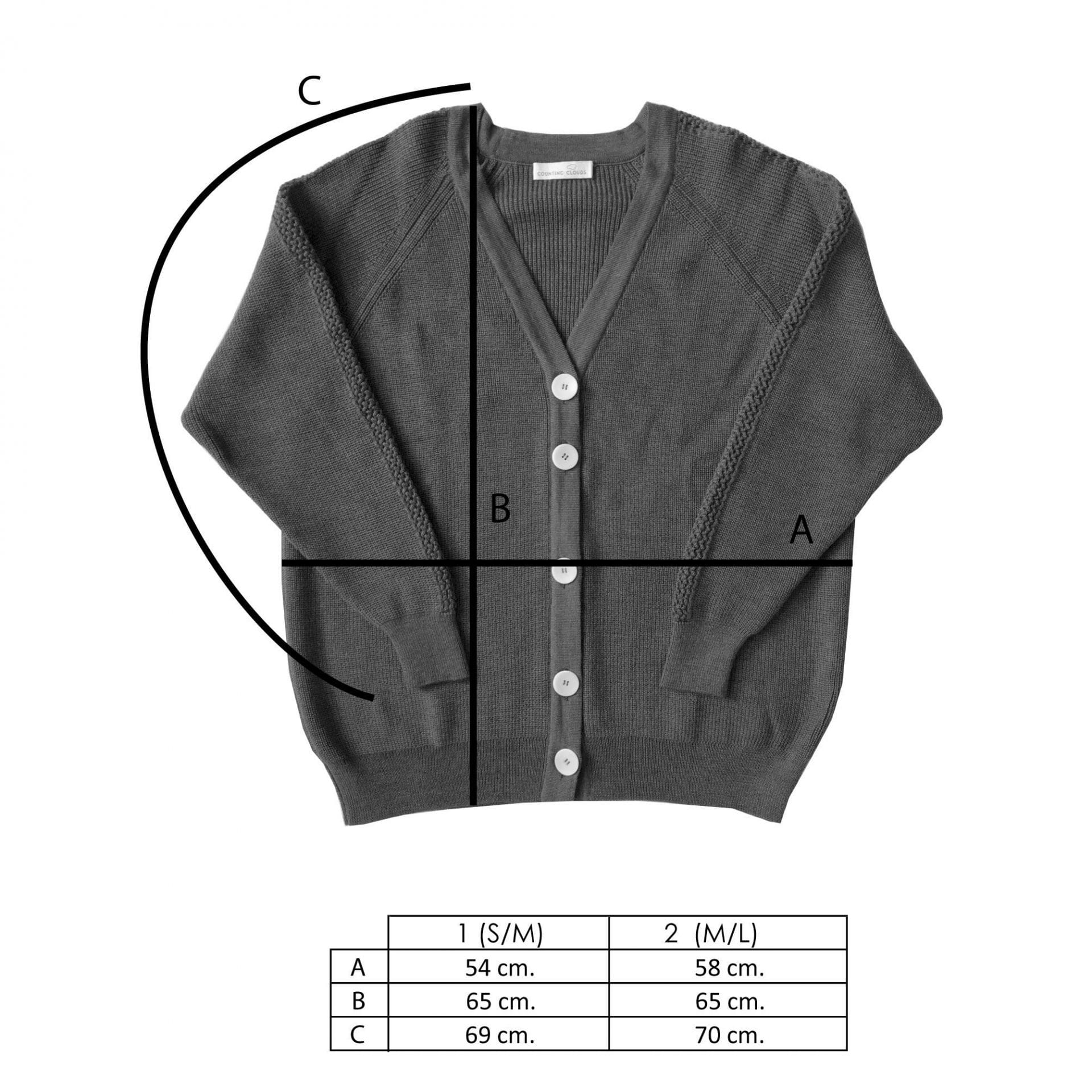 Guía de tallas del cardigan de lana merino