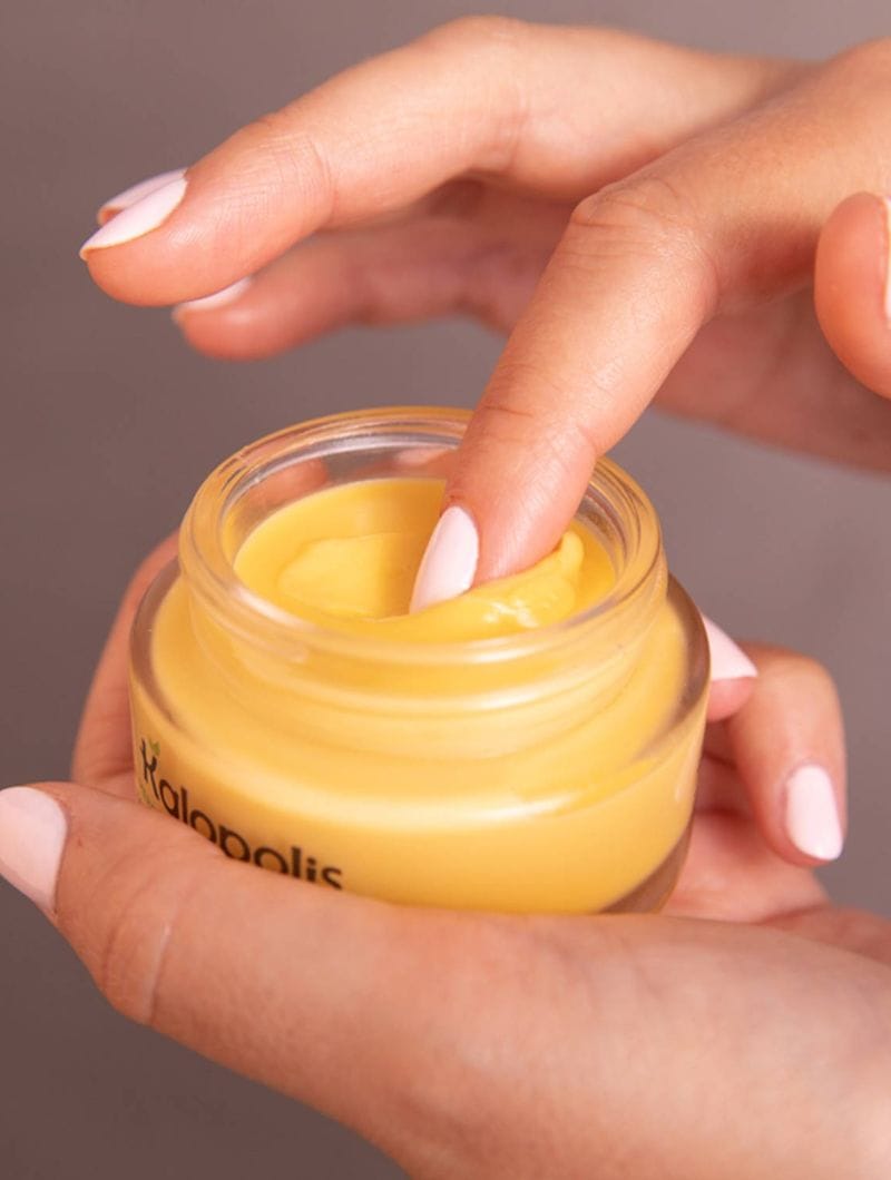 - La nuez de macadamia es otro componente esencial. Contiene vitamina E y Omega-7, lo que mejora la elasticidad de la piel y previene el envejecimiento prematuro. Además, sus propiedades analgésicas y desinflamatorias calman la piel, y contribuye a unificar su tono, proporcionando una tez más uniforme.