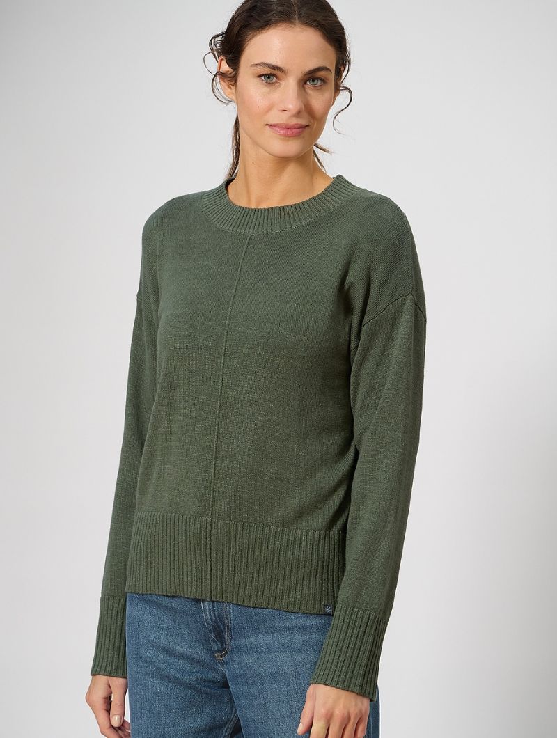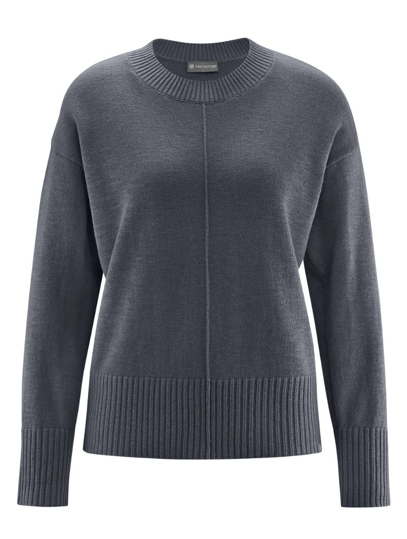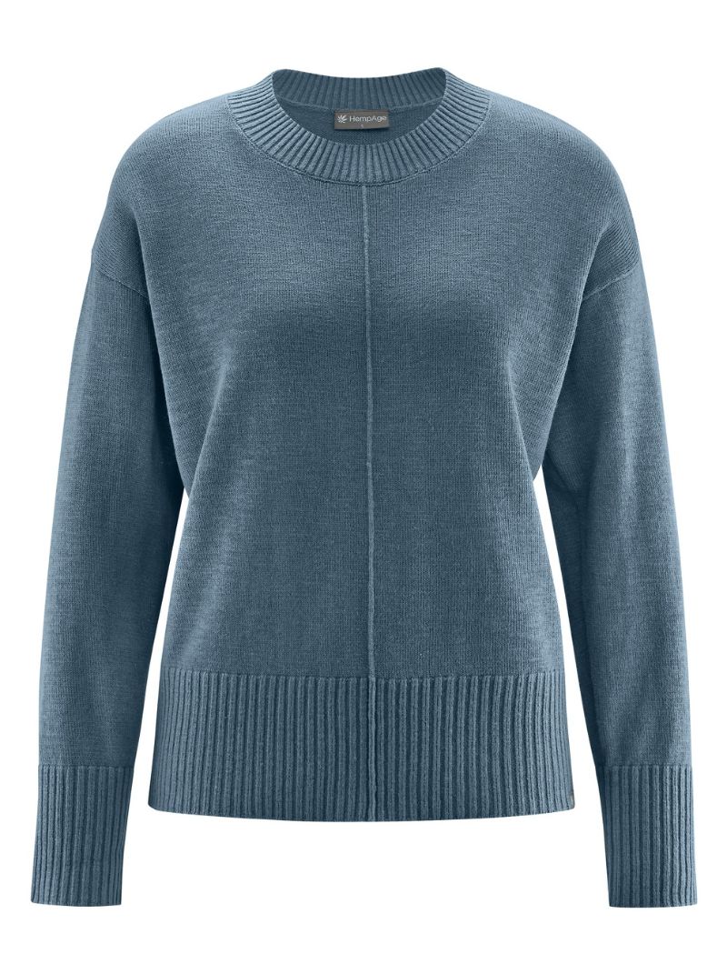 Jersey de punto confeccionado en cáñamo y algodón orgánico. El hilo flameado aporta una textura suave y ligera, mientras que los acabados acanalados extra anchos en cuello, mangas y bajo marcan la diferencia. Una costura vertical en el delantero añade un detalle sutil que refuerza su carácter.