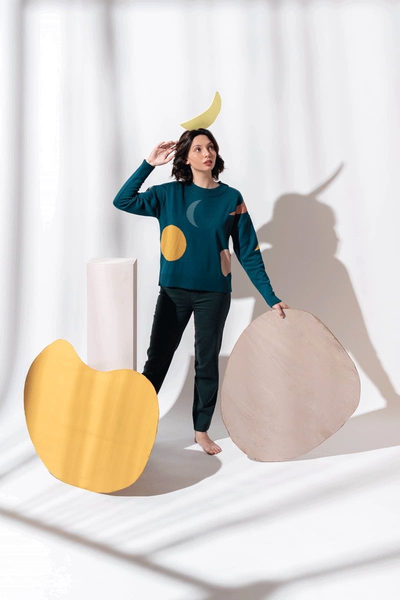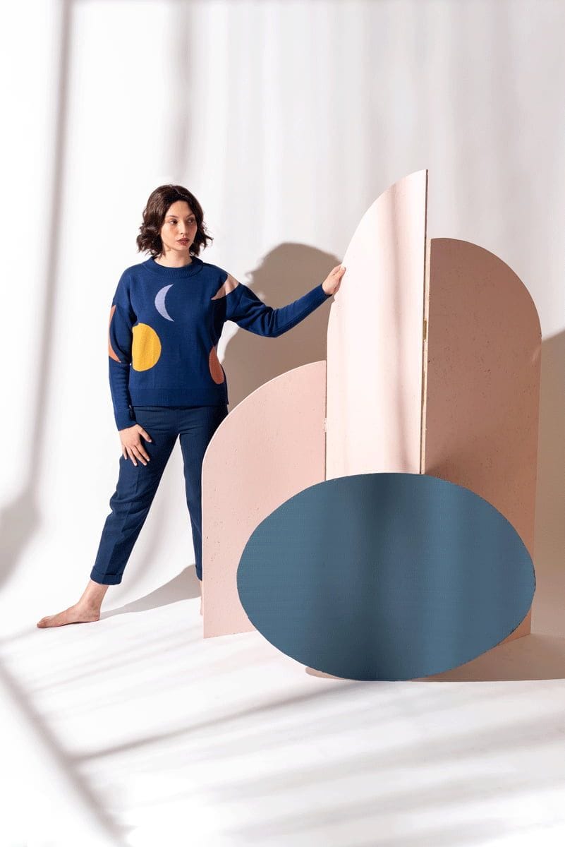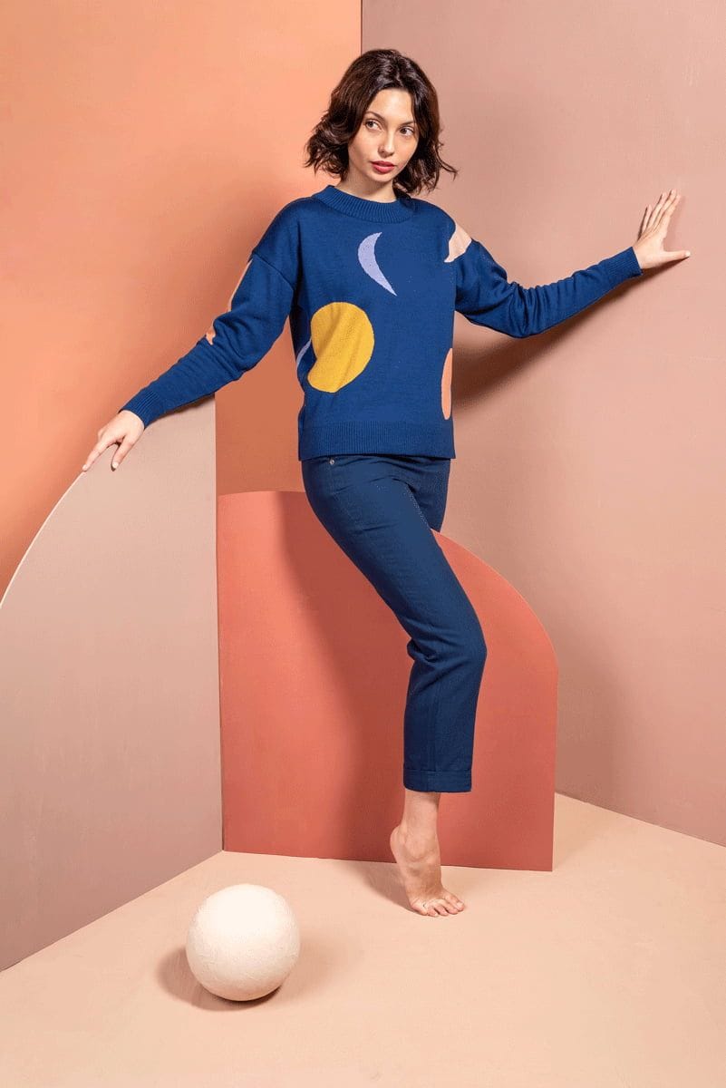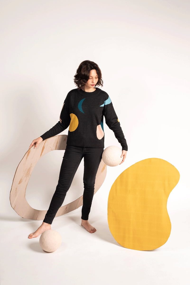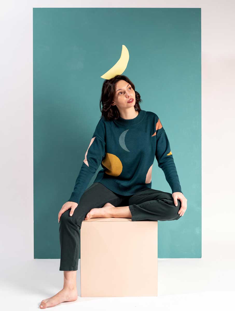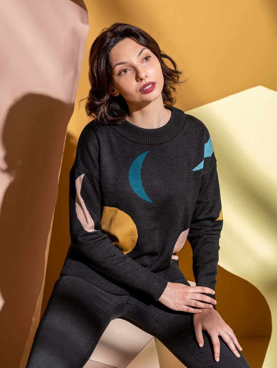 Jersey de lana estampado para mujer con fases lunares de colores.
