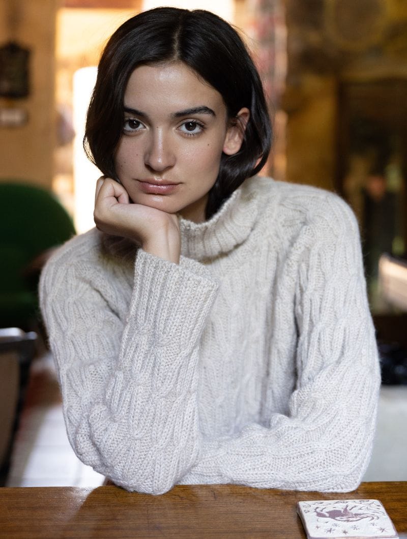 Jersey grueso de cuello alto de pura lana virgen y lana de alpaca beige, de nuestra marca ROADE.