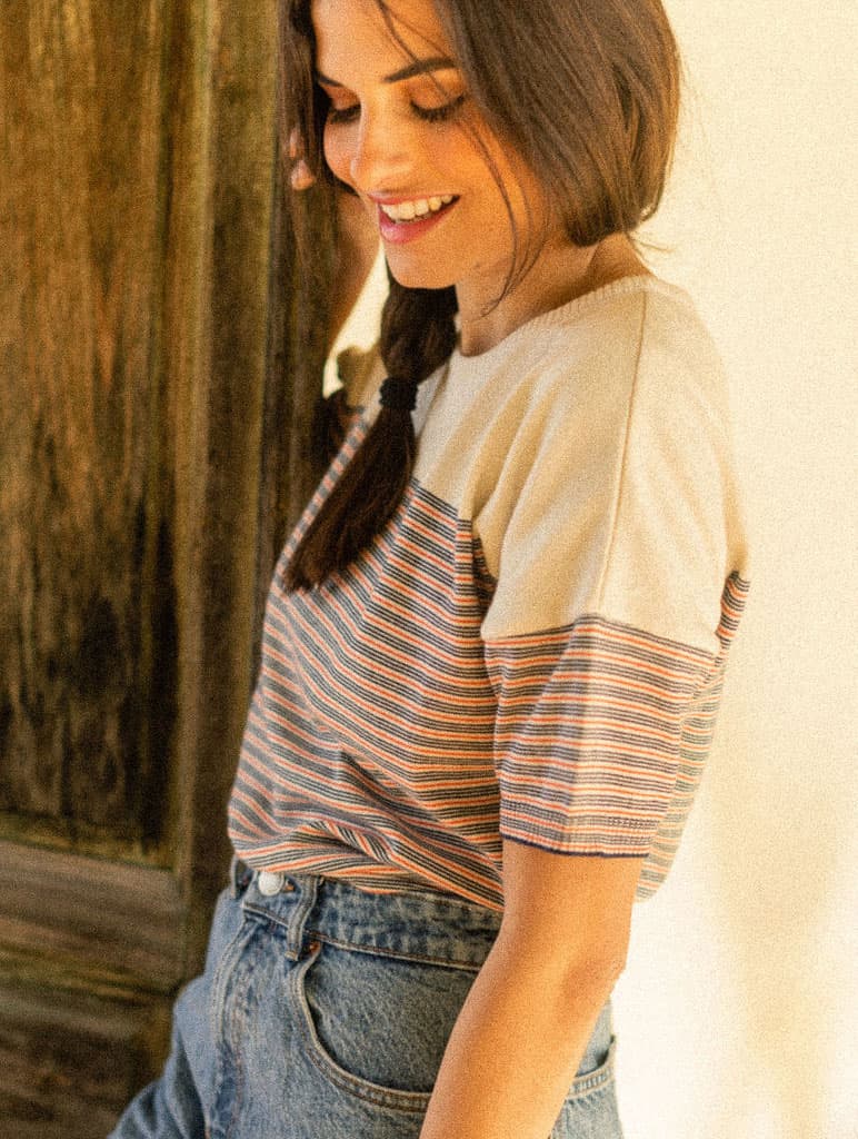 Jersey manga corta mujer con rayas marineras.