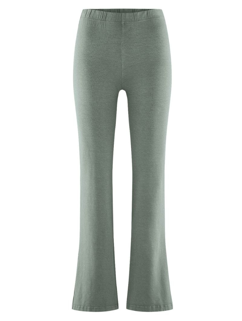 Estos leggins acampanados para mujer de estilo retro combinan la estética de los años 70 con la sostenibilidad del siglo XXI. Confeccionados en un suave jersey cepillado de 300 gr/m², estos leggins ofrecen una composición de 53% cáñamo, 42% algodón orgánico y un 5% de elastano, garantizando resistencia, comodidad y una ligera elasticidad para adaptarse perfectamente a tu figura.