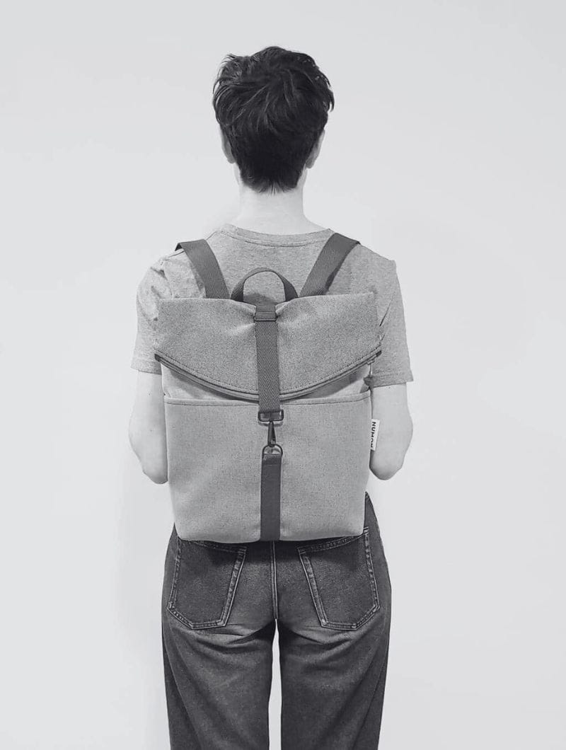 Si buscas una mochila original, ecológica y práctica, esta es la tuya. Esta mochila está hecha con loneta de poliéster reciclado a partir de botellas PET, que le da un aspecto resistente y ligero. Además, tiene una base de tapicería reciclada repelente al agua en color gris aluminio, que combina a la perfección con el estampado exclusivo de triángulos de Xenia Besora.