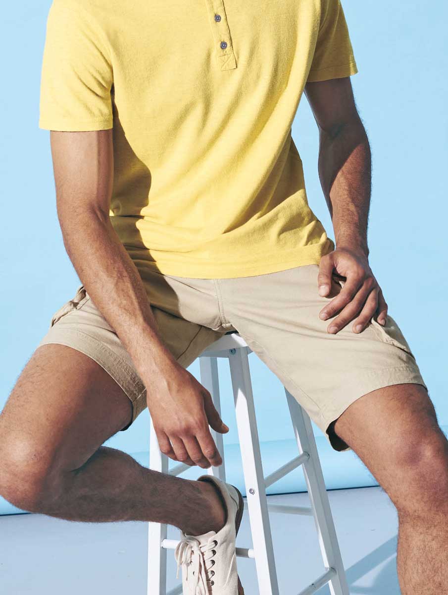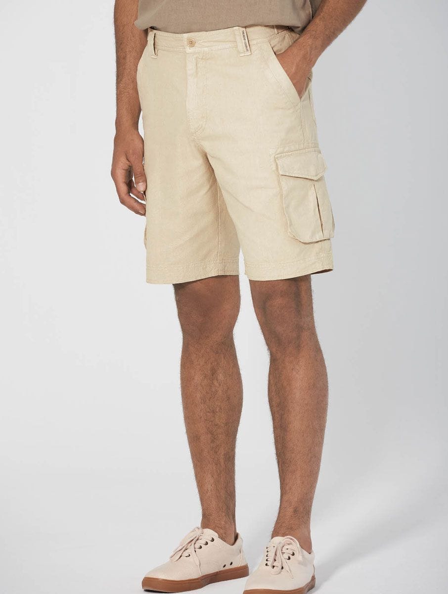 El pantalón corto cargo está fabricado en una mezcla de cáñamo y algodón orgánico con certificados Organic Content Standard y OEKO-TEX® Standard 100.
