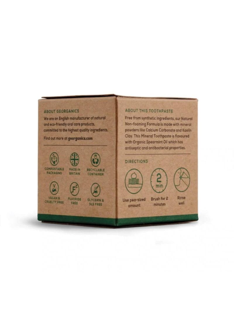 Se trata de una pasta de dientes mineral mezclada con aceite de menta inglesa orgánica. Esta menta es similar a la menta verde, pero con un sabor más intenso. El aceite de menta es extraordinariamente eficaz contra las bacterias anaeróbicas, causantes de enfermedades en encías, entre otras.