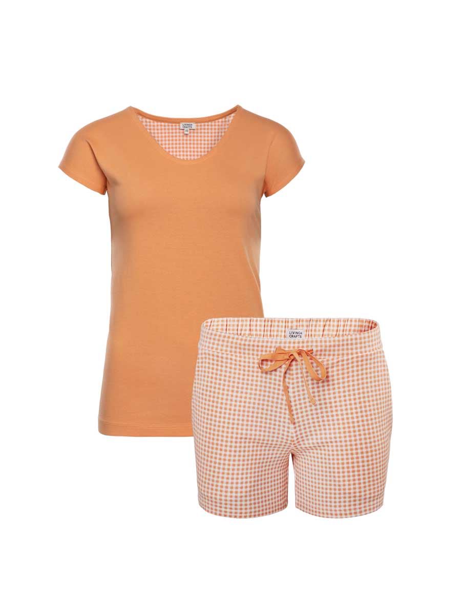 Los pantalones cortos son de cuadros vichy, a juego con el estampado interior de la camiseta. Son suaves y acogedores, y se adaptan a tu cuerpo con una cintura elástica y un cordón ligero. Los dos bolsillos laterales te ofrecen espacio para guardar lo que necesites.