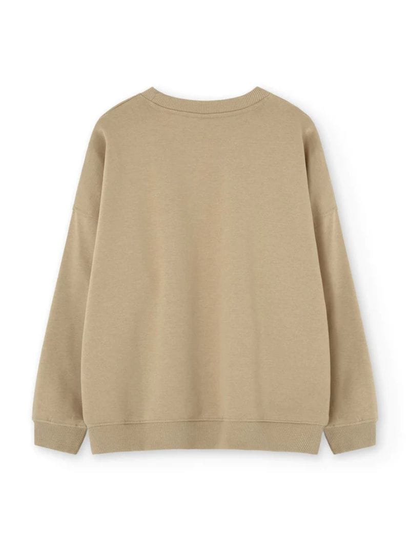 Fabricada en suave algodón orgánico, garantiza una sensación agradable y respetuosa con la piel, ideal para los días más frescos. El tejido ecológico de la sudadera oversize beige, 100% libre de tóxicos y con cualidades hipoalergénicas, cuida de ti y del planeta.