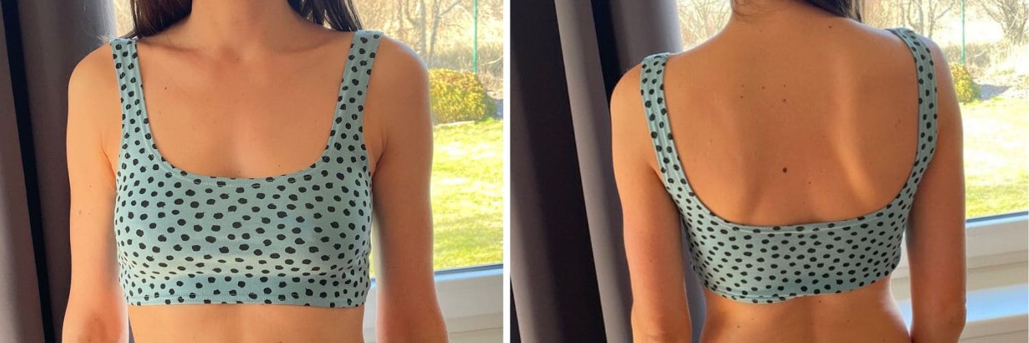 Este sujetador tipo top sin aros ni relleno es muy cómodo y versátil. Podrás llevarlo como prenda interior o como prenda exterior para hacer deporte, para la piscina o la playa.