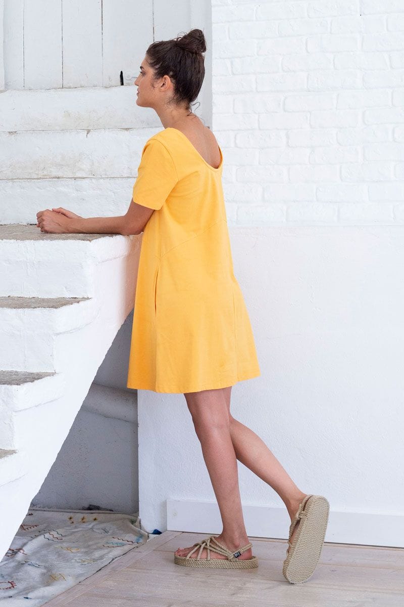 Vestido corto amarillo de algodón orgánico.