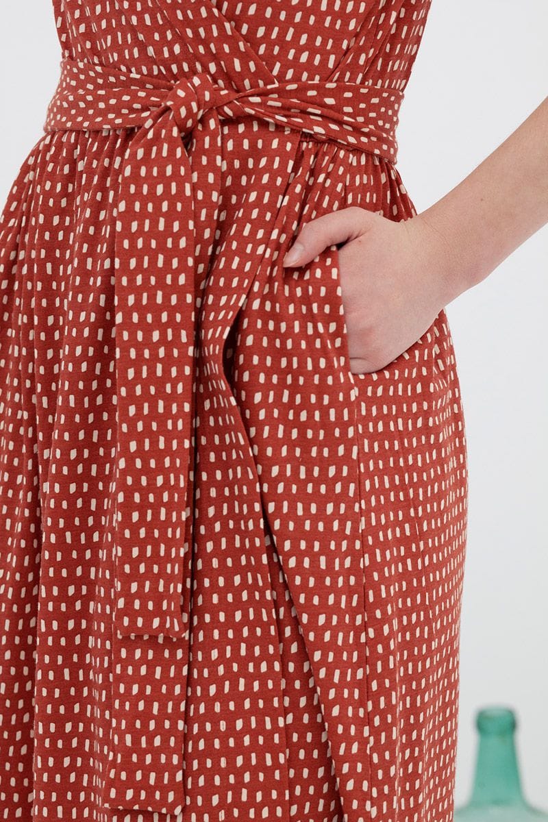 Vestido cruzado de algodón orgánico con bolsillos laterales.
