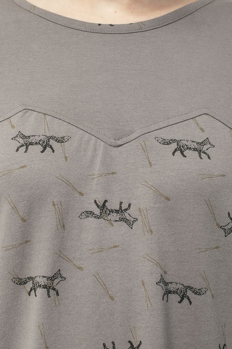 Este sencillo vestido corto de manga larga tiene un estampado de zorros y agujas de pino muy original.
