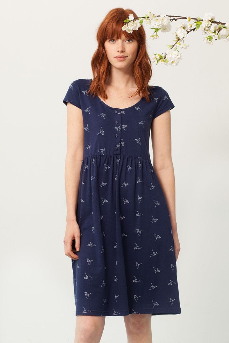 El vestido oversize con botones azul es un producto textil de Comercio Justo que ha sido fabricado de forma ética.