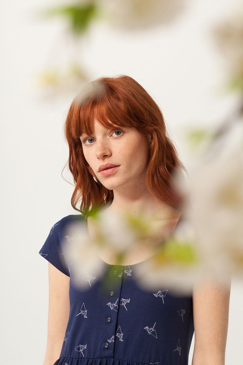 Ropa de mujer ecológica confeccionada con algodón orgánico certificado por GOTS y tintes respetuosos con el medio ambiente.