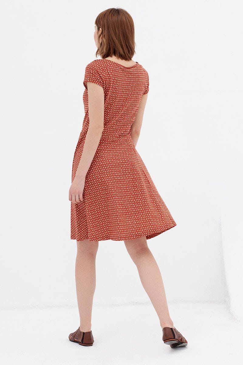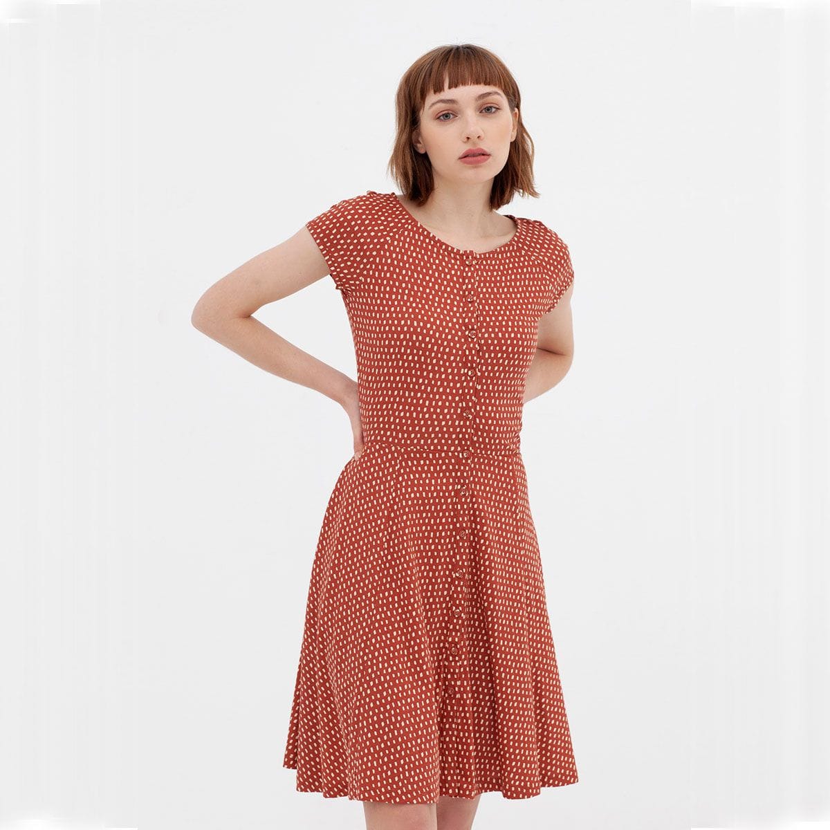 Si necesitas más información acerca de las dimensiones del vestido retro entallado de algodón orgánico, no dudes en consultar la siguiente guía de tallas.